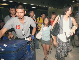 李亞鵬(左一)天天和王菲(右一)熱線,中為童童。