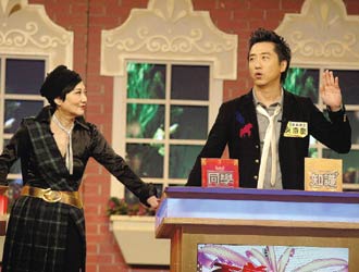 哈林(右)昨天參加百萬小學(xué)堂錄像,擔(dān)任主持人張小燕(左)的來賓。