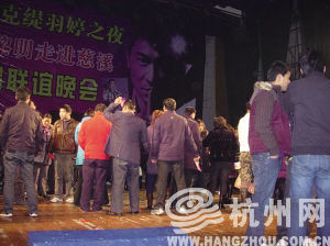 但觀眾已經(jīng)不買賬,高漲的情緒在此刻已經(jīng)演變成一種被欺騙后的憤怒。慈溪人民大會堂值班工作人員傅先生本想去調(diào)解,可他發(fā)現(xiàn)場面已不是他能控制,便撥了110。