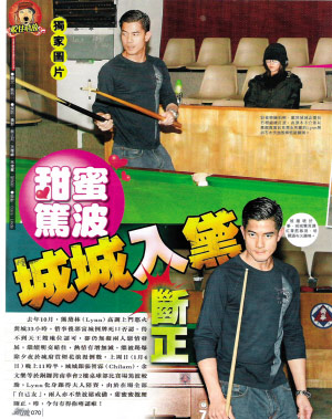 去年10月,熊黛林高調(diào)上門密會(huì)郭富城33小時(shí),但事后郭富城照樣矢口否認(rèn)戀情。其實(shí),兩人一直繼續(xù)暗中交往,繼早前被爆元旦前夜共賞煙花浪漫倒數(shù)之后,1月4日晚11時(shí)半,郭富城跟張智霖、余文樂等人在香港銅鑼灣南華會(huì)2樓玩桌球,熊黛林又被發(fā)現(xiàn)做“跟得夫人”陪賽?赡苡捎谠趫(chǎng)的全部都是“自己人”,熊黛林與郭富城放松了戒備,甜蜜蜜地?fù)а涣媳幌愀邸肮纷小迸膫(gè)正著!