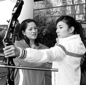 黃奕在劇中扮演中國(guó)射箭運(yùn)動(dòng)員田會(huì)會(huì),她在奧運(yùn)會(huì)上的主要對(duì)手就是容祖兒扮演的韓國(guó)射箭高手申真依,而兩人的父親也是一對(duì)宿敵。黃奕表示,在拍攝這部電視劇之前,她對(duì)射箭一竅不通,為此她專(zhuān)門(mén)向北京奧運(yùn)會(huì)射箭冠軍張娟娟“拜師”,并邀請(qǐng)她在劇中也客串自己的射箭教練。拍攝前,張娟娟專(zhuān)門(mén)對(duì)黃奕進(jìn)行了三天的封閉訓(xùn)練,“每天我都要用重達(dá)20磅的弓箭練習(xí)拉弓至少100次,一開(kāi)始根本拉不滿(mǎn),于是就想換皮筋,以為裝裝樣子就行了,沒(méi)想到被教練一通狂批,然后只能咬牙硬著頭皮練下去。 ”正所謂嚴(yán)師出高徒,正是張娟娟的嚴(yán)格要求才讓黃奕擁有了熒屏上張弓搭箭的颯爽英姿。