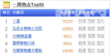 新民網(wǎng)記者在百度等搜索網(wǎng)站看到,僅2月1日一天,網(wǎng)友搜索“丫蛋”這一詞條已近四萬次,名列百度搜索排行前列。而在貓撲論壇等國內(nèi)知名論壇,表示看了春晚立刻上網(wǎng)去搜 “丫蛋”的網(wǎng)友也為數(shù)眾多。不少網(wǎng)友表示事后發(fā)現(xiàn),“丫蛋”一開始并無其人,經(jīng)歷春晚后,才一躍成為網(wǎng)絡(luò)紅人。蕭君瑋