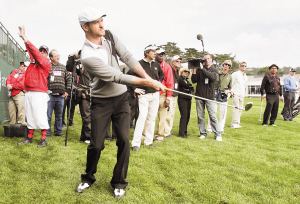 昨日,圓石灘配對(duì)賽賽前一天的名人挑戰(zhàn)賽在美國(guó)圓石灘球場(chǎng)舉行,卡梅隆·迪亞茲的前男友、美國(guó)歌手賈斯汀現(xiàn)場(chǎng)大獻(xiàn)球技。當(dāng)日賈斯汀似乎成績(jī)不錯(cuò),擊球進(jìn)洞后,喜劇演員雷·羅馬諾還上前與他擊掌表示祝賀。比賽休息時(shí)間,賈斯丁又向出演過(guò)《冒牌上帝》、《陽(yáng)光小美女》等片的男星格雷戈·金尼爾大獻(xiàn)殷勤,不斷為格雷戈按摩肩膀。
