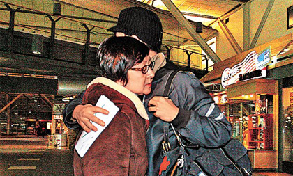 抵閘口時(shí),Edison母子依依不舍深情擁抱,Edison跟母親說聲“Take care(保重)”后便由公司同事陪伴入閘,兩保鏢未有隨行。據(jù)知Edison乘坐的是國泰航班商務(wù)客位。