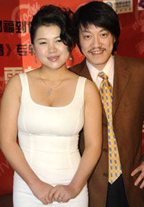 中新網(wǎng)3月4日電 (李季) 以一首《東北人都是活雷鋒》紅遍大江南北的雪村昨日和新婚妻子俞晴舉辦《美女財(cái)福到你家》合輯無線首發(fā)儀式。當(dāng)日下午,俞晴以一襲白裙搶眼亮相。當(dāng)有記者問及,夫妻倆是否會(huì)取一組合名字時(shí),俞晴打趣道:“馮小剛夫妻一起合作那么多年,也沒見取一組合名字啊”。