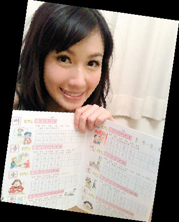 李詩韻從小就在加拿大讀書,雖然回香港做了5年的演藝工作,已經(jīng)能看懂70%的中文,但是會(huì)寫的漢字不足200個(gè),平時(shí)寫博客也需要麻煩同事幫忙。從她博客上的圖片可以看到,練習(xí)冊(cè)上歪歪斜斜地寫著“門”、“房”、“橋”等字,目前只相當(dāng)于一年級(jí)學(xué)生的水平。