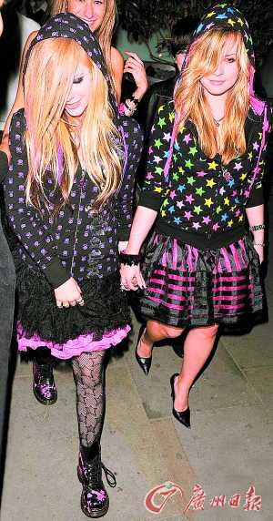 前日,搖滾歌手艾薇兒(Avril Lavigne)亮相倫敦Boujis夜店消遣。化著煙熏妝,滿手戒指的她個性十足,帶有骷髏圖案的帶帽配褶皺短裙充滿搖滾可愛兼?zhèn)涞慕诸^風(fēng)格。也許是玩得過Hign喝多了,艾薇兒顯得有些醉眼迷離。