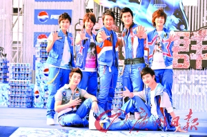 昨日,人氣組合Super Junior-M在中國(guó)香港出席代言百事簽約儀式(見上圖),在形式上搞搞新意思坐著推土機(jī)出場(chǎng),散發(fā)著陽(yáng)光氣息,身為Super Junior-M隊(duì)長(zhǎng)的韓庚更表示,希望可以借現(xiàn)在專輯發(fā)布、人氣上升的時(shí)機(jī),向影視方面進(jìn)軍。