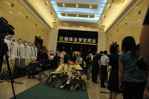 進(jìn)入悼念的人井然有序,從正門進(jìn)入,偏門出,速度迅快。“咱們就不鞠躬了,看一看羅老師就走!爆F(xiàn)場工作人員反復(fù)叮嚀。