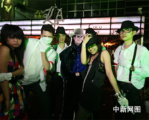 中新網(wǎng)7月7日電 流行樂壇天王邁克爾•杰克遜將于北京時(shí)間8日凌晨將在洛杉磯舉行公眾悼念活動(dòng),全球主要電視臺(tái)紛紛現(xiàn)場(chǎng)直播昨晚,中國(guó)的“杰克遜迷”齊聚北京著名的夜店,為杰克遜舉行音樂專場(chǎng)紀(jì)念活動(dòng),現(xiàn)場(chǎng)歌曲全部是杰克遜的成名作,不少外國(guó)人也加入到懷念杰克遜的隊(duì)伍中。