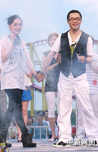 不同的是,這次阿嬌的出現(xiàn)雖然少了阿SA,但非孤單一人。記者發(fā)現(xiàn),阿嬌自始至終與藝人姜鵬在一起,二人不管臺上臺下都是牽手同行,而且表情時有曖昧。