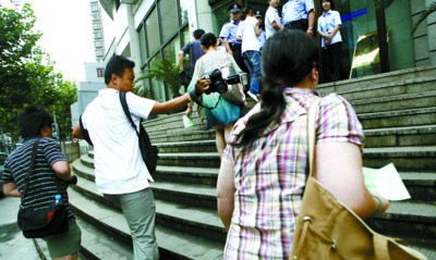 上午8點(diǎn),距離開庭時間還有1小時,記者在靜安法院門口看到,多名法警已經(jīng)在門口維持秩序!捌綍r8點(diǎn)半上班,今天都提前來了。 ”一名工作人員告訴記者,為了這次開庭,法院做了充分準(zhǔn)備,并購置了多臺設(shè)備。