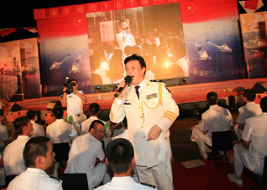 中新網(wǎng)8月22日電 8月21日晚,宋祖英、呂繼宏等多位名星,齊聚南海艦隊某軍港,為剛剛凱旋的海軍第二批護航編隊官兵獻上了一臺精彩的演出。