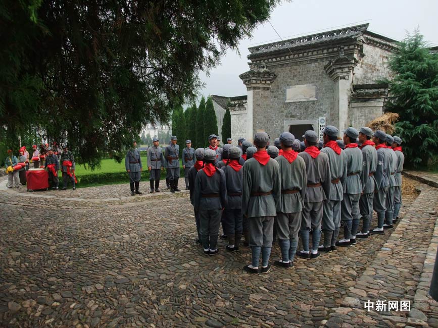 中新網(wǎng)9月18日電 大型建國(guó)獻(xiàn)禮片電視劇《鐵軍之花》(原名《新四軍女兵》)正在橫店拍攝。臺(tái)灣男演員黃維德在劇中飾演一名新四軍戰(zhàn)地服務(wù)團(tuán)的團(tuán)長(zhǎng),一路帶領(lǐng)新四軍女兵忠誠(chéng)為黨效力。