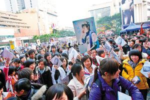 昨日下午,炙手可熱的郭敬明帶著他的新書《小時(shí)代》來到沙坪壩重慶書城,引發(fā)近千名粉絲瘋狂尖叫。原定于下午2點(diǎn)舉行的簽售,推遲到5點(diǎn)10分開始,最早從早上8點(diǎn)就開始排隊(duì)的粉絲等了將近9個(gè)小時(shí),但這些大多數(shù)為十幾歲的女生并沒有抱怨,說“只要來了就好”。據(jù)重慶書城統(tǒng)計(jì),全天售出《小時(shí)代》1200本;持續(xù)近2個(gè)小時(shí)內(nèi),郭敬明簽了2000本左右。