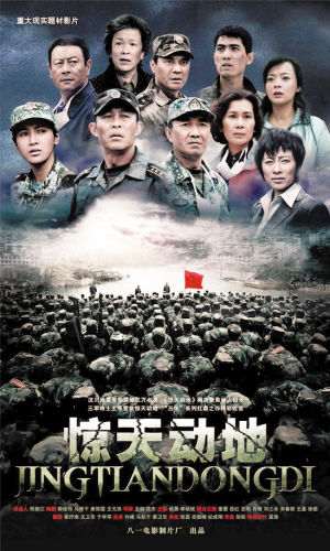 在紀(jì)念汶川大地震一周年之際,八一電影制片廠(chǎng)舉行了再現(xiàn)部隊(duì)官兵抗震救災(zāi)的故事片《驚天動(dòng)地》的看片會(huì)。參拍部隊(duì)和四川災(zāi)區(qū)群眾代表共同出席了看片會(huì)。