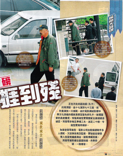 工作認真的發(fā)哥為演好孔子而留須、剃頭發(fā),為配合角色的書卷氣質(zhì)和高瘦外形,他在開拍前一個月減肥和看書,他表示:“我不能做一個胖胖的孔子,我從3月份開始減肥,控制飲食量,晚飯只吃魚和菜,戒白飯,少食淀粉物質(zhì),已減去約20斤!彼鸭瞬簧賹懣鬃拥臅诰殞Π。