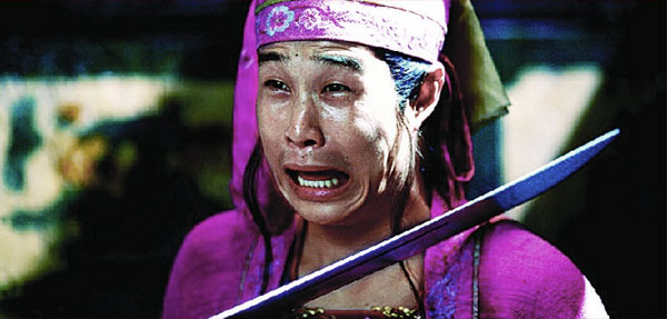 張藝謀新片《三槍拍案驚奇》昨(22)日發(fā)最新劇照,包括閆妮、孫紅雷等造型都得以曝光,其中小沈陽的“哭相”最為搞笑。頭戴粉紅帽的“粉紅男郎”小沈陽,本就有幾分喜劇色彩,面對刀劍的他原來也很怕死,“哇”的一聲大哭,露出了一排整齊的牙齒,頗有效果。同時孫紅雷的最新造型照也發(fā)出,一身盔甲的他趁著夜色出現(xiàn)在“麻子面館”門口,手持弓箭殺氣騰騰。從所有劇照來看,張藝謀對色彩的追求依然鮮艷,服裝造型相當(dāng)考究。(記者 唐愛明)