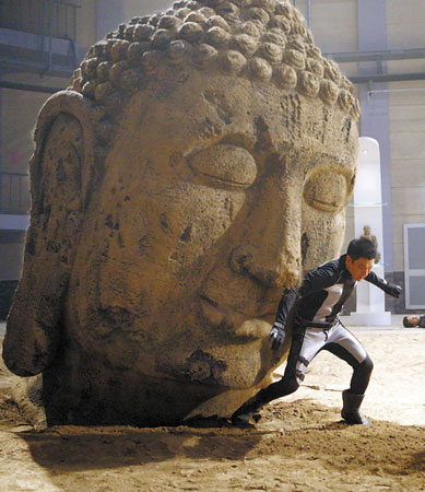 在《未來(lái)警察》中,劉德華化身為正義的未來(lái)警察,跟大S、范冰冰、徐嬌、樊少皇、賀軍翔共同上演了一出時(shí)空穿梭、正邪激戰(zhàn)的火爆好戲。片中有一幕,拍的是劉德華站在一尊兩米高的石佛之下,與樊少皇率領(lǐng)的改造人團(tuán)伙激烈打斗。據(jù)了解,一貫追求完美的劉德華當(dāng)時(shí)堅(jiān)持不用替身,結(jié)果意外發(fā)生了。雖然已事先備下保護(hù)措施,但在推動(dòng)佛像的過(guò)程中,這座千余斤的巨物卻突然失控,將劉德華壓在下面。現(xiàn)場(chǎng)工作人員大驚失色,一擁而上解救他,但畫面也因此穿幫。 (李麗)