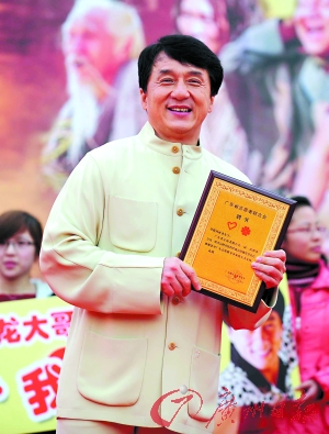 成龍大哥為了新片《大兵小將》做宣傳很賣力,廣州作為第三站,行程卻安排了三場發(fā)布會。還不包括流產的一場。為了迎接成龍,各主辦方都掐著時間搞活動,而成龍所到之處,粉絲的熱情讓空氣陡然熱起來。當天,被授予廣東志愿者協會名譽會長的成龍將300張《大兵小將》電影票送給廣州亞運會志愿者!