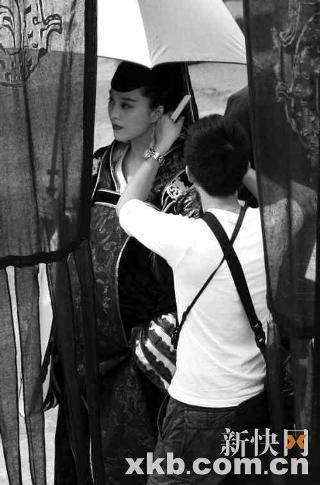 現(xiàn)場所見,范冰冰以華服綾羅的公主造型端坐在馬車內(nèi),黑紗遮面,被趙文卓緊緊牽著。她扮演的莊姬是趙孤的生母,因此也是片中分量最重的女性角色。導(dǎo)演一喊卡,立即有三四個助手沖上去攙扶范冰冰下車,這時候記者才發(fā)現(xiàn),范冰冰腹部高聳,肚大如籮。雖然范冰冰早前在《蘋果》中也扮演過孕婦角色,不過像這樣夸張的“十月臨盆”的大肚造型還是比較罕見的。范冰冰在戲內(nèi)萬人之上,戲外也是排場十足。專人打傘,專人提裙,專人遞水,專人開路。(新快報)