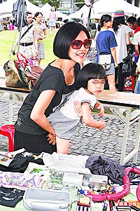 中新網(wǎng)7月27日電 小S昨天帶著3歲的許俏妞和1歲的Lily兩個(gè)女兒現(xiàn)身臺(tái)北華山創(chuàng)意園區(qū)的跳蚤市場(chǎng),把自己的T恤、洋裝跟姊姊大S的小可愛全部200元左右臺(tái)幣的平價(jià)出清。