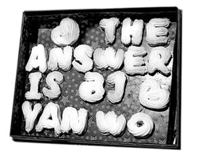孫燕姿接過盒子,看到餅干上 的 字 :TheanswerisBJyanwo,點(diǎn)頭微笑。