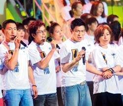 郭富城昨演唱〈愛的呼喚〉溫暖災民,他專程從北京趕返香港,表示曾經(jīng)在臺灣生活過一段日子,“臺灣是我半個家,當?shù)弥_灣發(fā)生水災,我感受很深,每次聽到臺灣有人受傷便心酸,所以我一定要返港出一分力,大會叫我做什么便什么。除了捐錢,我覺得要安撫災民,我的歌迷會已計畫幫手籌款。”