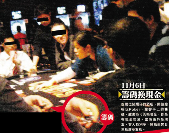 梁律師指出:“酒吧用金錢換籌碼來賭牌,和賭場有什么分別呢?香港只有馬會(huì)有合法賭博牌照。依照條例可以在酒吧、會(huì)所和酒樓內(nèi)玩麻將、牌九等活動(dòng),但莊家一定不可以抽傭,也不可以下場玩,而且只能是單純地玩牌,不可以涉及金錢。如果顧客用金錢換籌碼,贏輸之后都可以換錢,那和賭場就沒有分別了。”