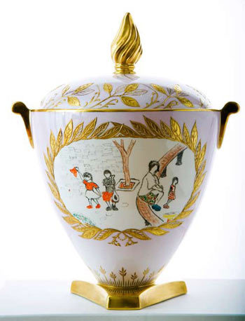 李亞鵬在2009年度嫣然天使基金慈善晚宴新聞發(fā)布會上表示,晚宴現(xiàn)場拍賣所需的藝術(shù)品已基本到位。其中,最吸引眼球的拍品無疑就是由兩位“潛力藝術(shù)家”竇靖童、李嫣聯(lián)手設(shè)計(jì)的Wedgwood-Trophy Vase(瑋致活—勝利之瓶)精致骨瓷。據(jù)悉,Wedgwood是英國傳統(tǒng)陶器品牌,竇靖童、李嫣為Trophy Vase所創(chuàng)作的這一設(shè)計(jì),取材于一家人融洽相處的畫面,表現(xiàn)出小孩眼中的溫馨家庭氛圍和每個(gè)人都渴望得到的關(guān)愛。