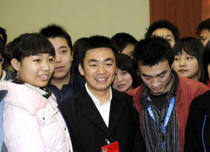 會(huì)議休會(huì)之后,工作人員安排他與邢臺(tái)的黨政領(lǐng)導(dǎo)見(jiàn)面,聞?dòng)嵍鴣?lái)的大會(huì)志愿者們和大會(huì)部分工作人員爭(zhēng)相與王寶強(qiáng)合影留念,一時(shí)間見(jiàn)面會(huì)現(xiàn)場(chǎng)擁擠不堪亂作一團(tuán)。