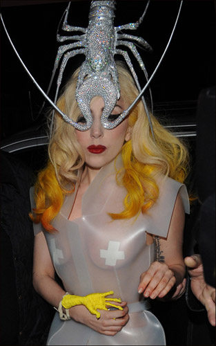 “明報(bào)”消息,剛獲英國音樂雜志NME讀者選為最佳兼最差衣著明星的Lady Gaga,繼續(xù)展示其“衣不驚人死不休”的時(shí)裝品味,上周六晚當(dāng)她完成倫敦O2 運(yùn)動場舉行的Monster Ball世界巡回演唱會后,隨即換上銀色“龍蝦帽”襯透視塑料衫,趕到中菜館宴請親友及工作人員,令人奇怪的是,食客當(dāng)中竟包括昵稱波士的美國搖滾歌手Bruce Springsteen。