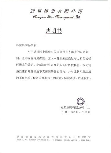 中新網(wǎng)4月23日電 近日,有媒體曝光湯唯的口述文章,講述其在英國的游學(xué)期間賣藝經(jīng)歷。對(duì)此,湯唯所屬經(jīng)紀(jì)公司發(fā)布聲明,稱該文章純屬捏造,宣稱湯唯本人從未接受過“與之相關(guān)的任何形式的采訪”。而對(duì)于此新聞所造成的不良影響,冠星娛樂也表示將“保留追究其責(zé)任的權(quán)益”。