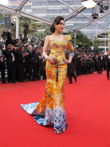 卜柯文先生介紹說:“這套禮服并不是特意為戛納準備的,這其實是源自冰冰偶然的一個設(shè)計靈感,她早前跟我講了她的想法,而我也覺得范冰冰身上有著中國女明星少見的一種大氣的女王范兒,所以經(jīng)過討論決定改良清朝的龍袍在霸氣中展現(xiàn)東方美,于是就做了這么一套衣服,想找一個合適的場合展示。我們找到設(shè)計師勞倫斯·許先生請他幫我們把這個創(chuàng)意實現(xiàn),他安排了三十個工人在十五天內(nèi)連續(xù)的純手工制作,非常辛苦。所以冰冰也很感謝勞倫斯,也是因為有他的幫助才有了大家看到的這件禮服。(生活新報)