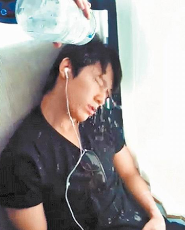 中新網(wǎng)6月28日電 韓國(guó)偶像團(tuán)體Super Junior成員希澈和東海、神童、銀赫約好,誰在床以外的地方睡著就要被潑水,結(jié)果在車上睡著的東海第1個(gè)遭殃,希澈倒了一整瓶礦泉水在他頭上,雖然很狼狽,東海仍硬撐:“好涼爽!”