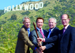 美國(guó)時(shí)間4月26日,加州州長(zhǎng)施瓦辛格專(zhuān)門(mén)在招牌所在的山腳下演講,他說(shuō):“好萊塢招牌是夢(mèng)想、機(jī)遇和希望的符號(hào),它矗立在那里歡迎著一代又一代的夢(mèng)想者、藝術(shù)家,還有奧地利的健美運(yùn)動(dòng)員來(lái)到這里!彼在講話中感謝了捐助者們,他們包括美國(guó)電影藝術(shù)與科學(xué)學(xué)院、CBS電視臺(tái)、NBC環(huán)球公司、索尼影業(yè)、20世紀(jì)?怂构、華納兄弟公司、時(shí)代華納公司、斯皮爾伯格、湯姆·漢克斯夫婦等等。