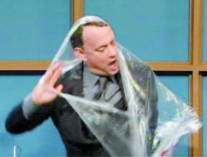 奧斯卡影帝湯姆·漢克斯5月16日在紐約做客《周六夜現(xiàn)場》節(jié)目。在節(jié)目中,湯姆·漢克斯被主持人威爾·法瑞爾惡搞,被套上了一個超大塑料袋,幾次掙扎后,這位影帝的俏臉都險些變形,最終還是撕破袋子獲釋。但惡搞只是節(jié)目的一部分,等湯姆·漢克斯平靜之后,他還在節(jié)目中與女星安妮·海瑟薇共同表演薩克斯。其實上電視,只是漢克斯忙里偷閑的一次放松,近期他的主要任務是為新片《天使與魔鬼》作宣傳,該片是《達·芬奇密碼》續(xù)集,在片中他依舊飾演哈佛教授羅伯特·朗頓。