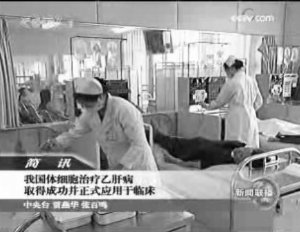 5月2日,央視新聞聯(lián)播國(guó)內(nèi)簡(jiǎn)訊中播報(bào)《我國(guó)體細(xì)胞治療乙肝病取得成功并正式應(yīng)用于臨床》的新聞,其中稱,“我國(guó)體細(xì)胞治療乙肝病取得成功并正式應(yīng)用于臨床,一項(xiàng)采用體細(xì)胞治療乙肝的新技術(shù)近日在解放軍第261醫(yī)院研究成功并正式應(yīng)用于臨床。該技術(shù)通過少量提取患者細(xì)胞后經(jīng)過體外培養(yǎng),再輸回到患者體內(nèi)激活免疫殺傷細(xì)胞,以達(dá)到殺滅血液及肝細(xì)胞內(nèi)的病毒”。
