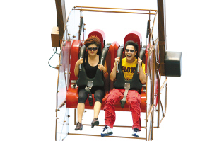 沖上云霄、過山車、大擺錘……小沈陽一共玩了八個(gè)項(xiàng)目,全是主題公園里最考驗(yàn)人膽量的游樂項(xiàng)目。但小沈陽完全不放在眼里,他挑選了過山車的第一排坐;而坐在海盜船上的時(shí)候,他卻又挑了最后一排,甚至在海盜船擺蕩至最高處的時(shí)候,他竟然拉開了安全擋桿,站了起來大喊大叫,“完全玩瘋了,倒是下面的游客被他嚇得半死。”陪同的楊小姐說:“他告訴我,他很喜歡去游樂園玩,最喜歡迪斯尼。”小沈陽最后還對(duì)龍門陣提了意見:“他說玩得挺盡興的,不過與迪斯尼相比,還是要多多努力!