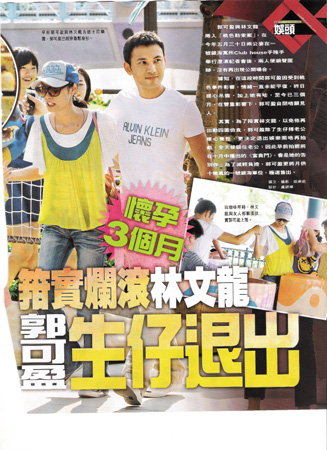 據(jù)報道,郭可盈已經(jīng)有三個月身孕,她的朋友透露:“文龍一直都希望有小朋友,但可盈事業(yè)心太重,整天想著工作,不想生孩子。不過發(fā)生桃色勒索案之后,他們經(jīng)常溝通,患難見真情,可盈終于答應生孩子,她希望有了孩子之后,文龍會有責任感,不要再像以前那樣出去玩。”