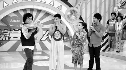 “連轉(zhuǎn)手帕”、“模仿大猩猩”、“翻跟斗摔跤”……二人轉(zhuǎn)舞臺上的經(jīng)典絕活,被趙本山的弟子張小飛、賀美玲、王金龍和毛毛原汁原味地呈現(xiàn)在臺灣的綜藝節(jié)目當(dāng)中,震驚了寶島的觀眾,簡單的笑聲和尖叫聲已經(jīng)不足表達他們的驚喜,見多識廣的臺灣綜藝名嘴康康和歐弟甚至都大嘆佩服。