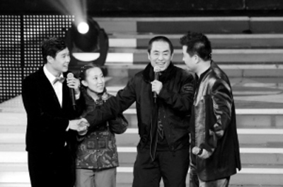 眼看唱主題歌的事要黃了,小沈陽和毛毛終于使出最后一個殺手锏:請出自己的舅姥爺,這舅姥爺并不是大病初愈的趙本山,正是《三槍拍案驚奇》的導(dǎo)演張藝謀。幾乎“絕跡”綜藝類節(jié)目,這次也算是為新片獻出了綜藝“處女秀”。至于為什么成了小沈陽和毛毛的舅姥爺,張藝謀的解釋是,我和丫蛋的爺爺(指趙本山)是好朋友啊!有了舅姥爺?shù)闹С,小沈陽和毛毛接下來的表演更賣力了,他們和《星光大道》的選手李玉剛等,進行了一系列的PK,可最后的結(jié)果還是不分伯仲?粗@兄妹倆不停的鬧騰,張藝謀最后發(fā)話了:“小沈陽,你也別在人家《星光大道》上胡鬧了,就跟我走吧,不看僧面看佛面,看在丫蛋她爺爺?shù)拿嫔,《三槍拍案驚奇》的主題歌,就讓你唱吧!”