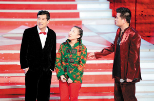 一番插科打諢后,小沈陽(yáng)和毛毛的“不差錢”組合,開始與星光大道的其他選手進(jìn)行較量,看誰(shuí)能最終演唱《三槍拍案驚奇》的主題歌。而這一期的嘉賓評(píng)委則是“三槍”劇組的主創(chuàng)人員。誰(shuí)知前幾輪亮分時(shí),“不差錢”組合根本沒(méi)占上風(fēng)。眼看唱主題歌的事要黃了,小沈陽(yáng)和毛毛終于使出最后的殺手锏,請(qǐng)出自己的“舅姥爺”,這“舅姥爺”不是別人,正是導(dǎo)演張藝謀。
