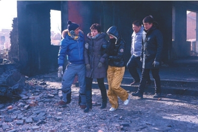 在郊區(qū)的片場,不但氣溫極低,還刮著五六級的西北風(fēng),而樓房周圍連安裝保護(hù)措施的位置都沒有,工作人員全棉服上陣還冷得跺腳,可憐的袁立最后凍得連說話都張不開嘴了,而當(dāng)她聽到許小寧發(fā)自心靈的呼喚時,臉上仍然很快就流下幸福的眼淚,表演功力非常了得。在這場戲中臺詞最多的黃磊也被大風(fēng)搞得面目全非,臉龐黑得像火炭,但他仍情愿為自己喜愛的角色奉獻(xiàn)。