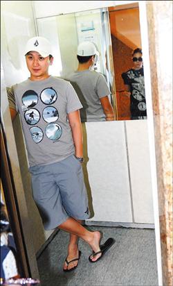 戴著帽子的黃柏俊,穿著T-Shirt、短褲,腳踩夾腳拖鞋,完全看不出富家公子哥的驕氣,看到記者的鏡頭,黃柏俊顯得有些尷尬,但眼見無處可躲,索性露出笑容,大方讓記者拍照,跟在后頭的侯佩岑則是一個箭步,閃進電梯里,記者問她何時結婚?一身時尚打扮的她笑而不答。