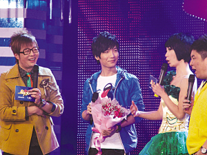 昨日,記者在網(wǎng)上搜索到了4月3日《星光大會》的節(jié)目視頻。一身時尚裝束的陳楚生在舞臺上依然惜字如金,不過卻偶爾能和主持人開起冷幽默玩笑,甚至大方和主持人深情對望,接受眾歌迷高呼“我愛你”的熱辣攻勢。有趣的是,剛剛結(jié)束和天娛合作的陳楚生,此次登場立刻以推薦人身份,在節(jié)目中薦“超女”出身同樣也和天娛解約的歌手胡靈和黨寧,黨寧更合唱陳楚生成名曲《有沒有人告訴你》。而記者獲悉,東南衛(wèi)視的這檔《星光大會》,將組織20名大陸歌手,在5月前往臺灣,與臺灣著名綜藝節(jié)目《超級星光大道》的歌手,來一場海峽兩岸歌手PK賽。