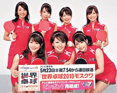 中新網(wǎng)4月19日電 日本東京電視臺(tái)去年轉(zhuǎn)播橫濱世界乒乓球賽,讓一批美女主播組成“乒乓 7”組合報(bào)道賽事,結(jié)果收視創(chuàng)下同類體育節(jié)目新高。世界乒乓球賽下月 23日在莫斯科開打,東京電視臺(tái)決定重召“乒乓”,眾美女主播更以火辣辣超短紅裙亮相拼收視。
