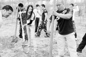 幾十位演員又是刨坑,又是澆水,雖然在劇中一個(gè)個(gè)都是“英雄好漢”,但面對(duì)小小樹苗卻沒了脾氣。對(duì)植樹一點(diǎn)不在行的他們,樹還沒植幾棵,就已經(jīng)累得大汗淋漓,有的人手上磨出了水泡,有的人手背被樹枝剮破。