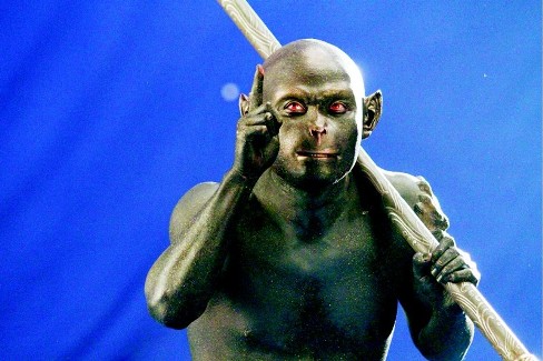 已經(jīng)進(jìn)入最后拍攝階段的張紀(jì)中版新《西游記》日前又曝光一組孫悟空的全新造型,傳說(shuō)中的“裸戲”也揭開(kāi)神秘面紗。據(jù)記者了解,此次曝光的劇照,專(zhuān)為孫悟空被太上老君煉丹爐煉燒的戲份設(shè)計(jì)。從劇照中看,由于猴毛在煉丹爐里完全被燒光,這個(gè)造型中,吳樾脫掉“猴毛衣”,取而代之的是包括眼睛、嘴唇在內(nèi)身上每一寸皮膚都涂滿(mǎn)烏金色的金粉,整個(gè)人都如少林寺18銅人一般,整體看起來(lái)就是一個(gè)具有中國(guó)特色的“阿凡達(dá)”。