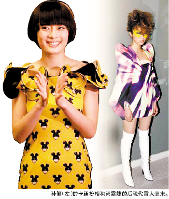 尚雯婕則刻意扮酷再次走Lady gaga 路線,一件幻彩大墊肩上衣配一頭金發(fā),半張臉上涂滿檸檬色油彩,誓要雷人到底。記者 程雪超
